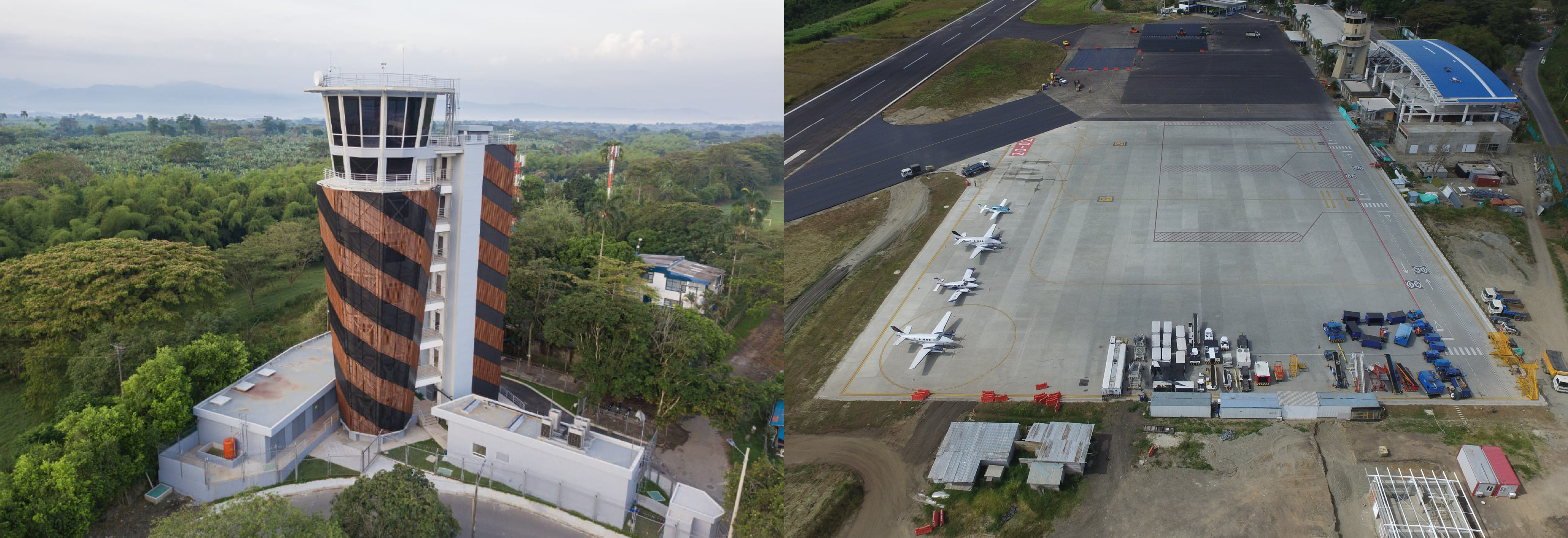 La nueva torre de control será el centro de procedimientos fundamentales para el funcionamiento del Aeropuerto El Edén en Armenia, ya que alojará los servicios operacionales y de navegación aérea, además de llevar a cabo el pronóstico y observación meteorológica, la supervisión de la plataforma y la asignación de aparcamiento de las aeronaves. Esta construcción tiene una altura de 34 m y se localiza hacia el costado sur del nuevo edificio terminal, definida por los ángulos de visibilidad de las cabeceras de pista, condicionada por la necesidad de garantizar de manera estratégica una visual de 360 grados. Consta de dos edificios, que se unen mediante un puente, permitiendo la conexión entre cada piso; la torre de escaleras que funciona como el punto fijo, y la torre de control de forma concéntrica y de geometría octogonal, conformado mediante perfiles tubulares de acero, generando un cuerpo cónico, entorno a un revestimiento entre paneles modulares de madera y lamina microperforada, configurando un espiral entre los dos materiales En conjunto esta infraestructura se compone de ocho niveles, destinados a salas y oficinas de monitoreo y soporte técnico, habitaciones asignados a controladores, zona de descanso, gimnasio y oficina ideam; además en el sexto nivel se designó la localización de centros de cómputo y por último en el fanal aproximación y cabinas de control con 16 posiciones de controladores que corresponde a séptimo y octavo nivel. Adicionalmente, cuenta con dos edificios base en su parte exterior, que corresponde a los cuartos técnicos, el primero destinado a área de descanso, basuras, cuarto sistema de bombeo hidráulico y sistema de red contra incendio y la subestación que alberga celdas, tableros, UPS y plantas eléctricas. Por otra parte, en cuanto al diseño urbano, cuenta con zonas de aparcamiento, zonas verdes y un cerramiento perimetral con seguridad en concertina, además cuenta con dos accesos vehiculares y un peatonal, esto proporcionándole un sistema compositivo al proyecto. La dotación tecnológica con la que cuenta la torre y el centro de control son de última generación y disponen de una sala técnica que es considerada “el cerebro” del funcionamiento de la torre de control y a su vez del Aeropuerto, además posee un servicio de comunicaciones, información radar, navegación, meteorología, ventilación mecánica y aires acondicionados, sistemas de grabación y control de seguridad con el fin de modernizar y garantizar una mayor eficiencia en las operaciones aéreas. La torre de control del Aeropuerto el Edén articulara servicios, espacios de actividad, circulaciones verticales y horizontales, y así como las estructuras y el cerramiento, se pensaron como unas piezas que propiciaran flexibilidad y adaptabilidad, además de confort y eficiencia al proyecto.